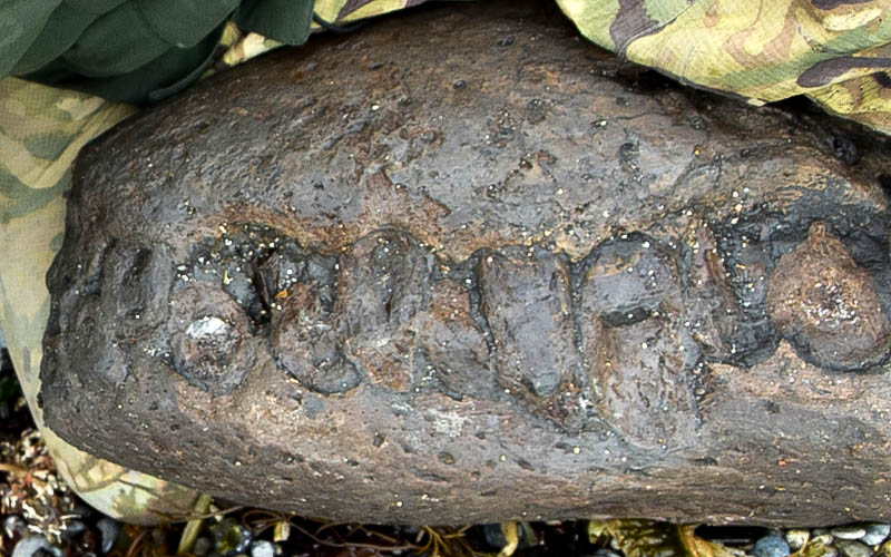 Philip initially thought the find was a piece of wood embedded in the shingle but when he looked closer he realised it was part of a skull. It had fallen out the cliff, tumbled onto the beach and been washed around for a few weeks. It was impossible to pick up so he had to get help; three others, a ladder, plywood and ratchet straps and then the fossilised bone had to be hauled a mile and a half off the beach.