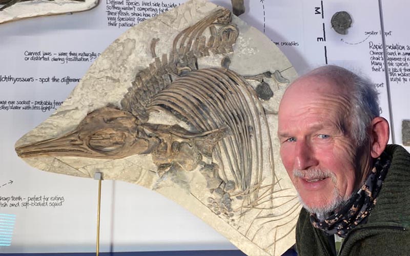 Dorset fossil hunter Dr Steve Etches MBE has unearthed a new type of prehistoric ‘sea dragon’ on a Dorset beach. He found it buried head-first in limestone.